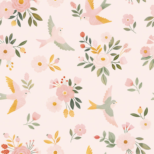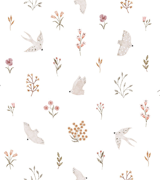 COCCINELLA - Papier peint enfant - Hirondelles et fleurs